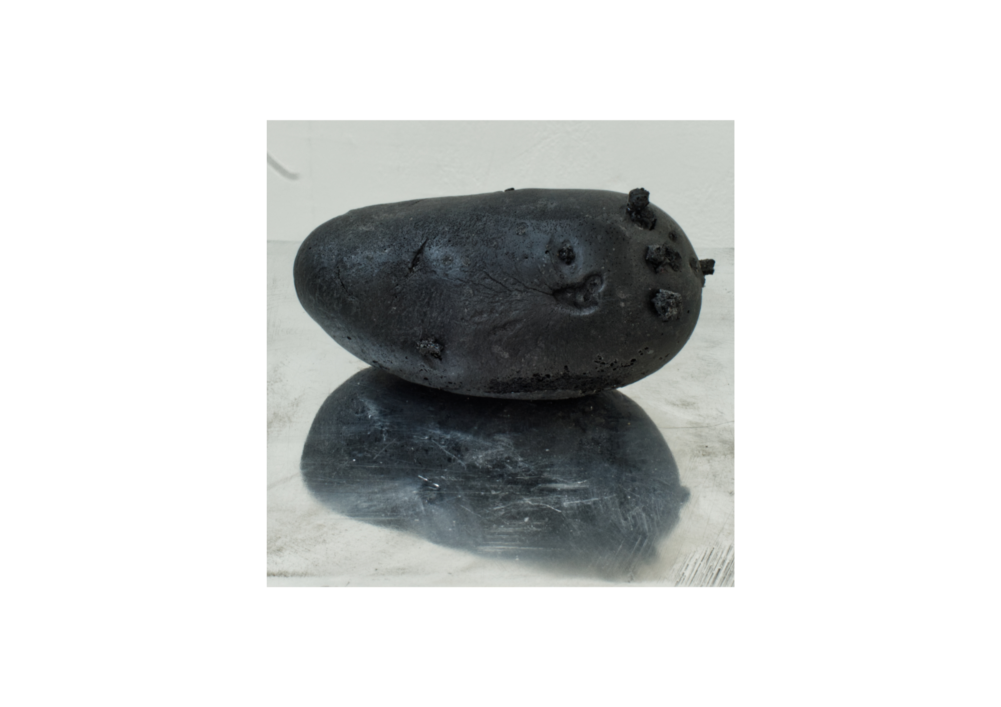 tree and savings-box (2021) tree: aluminium, resin, recycled glass, led (h 238 cm), savings-box: aluminium (19 x 15 x 11 cm, potatoes (2020/21) resin, (orig. size)